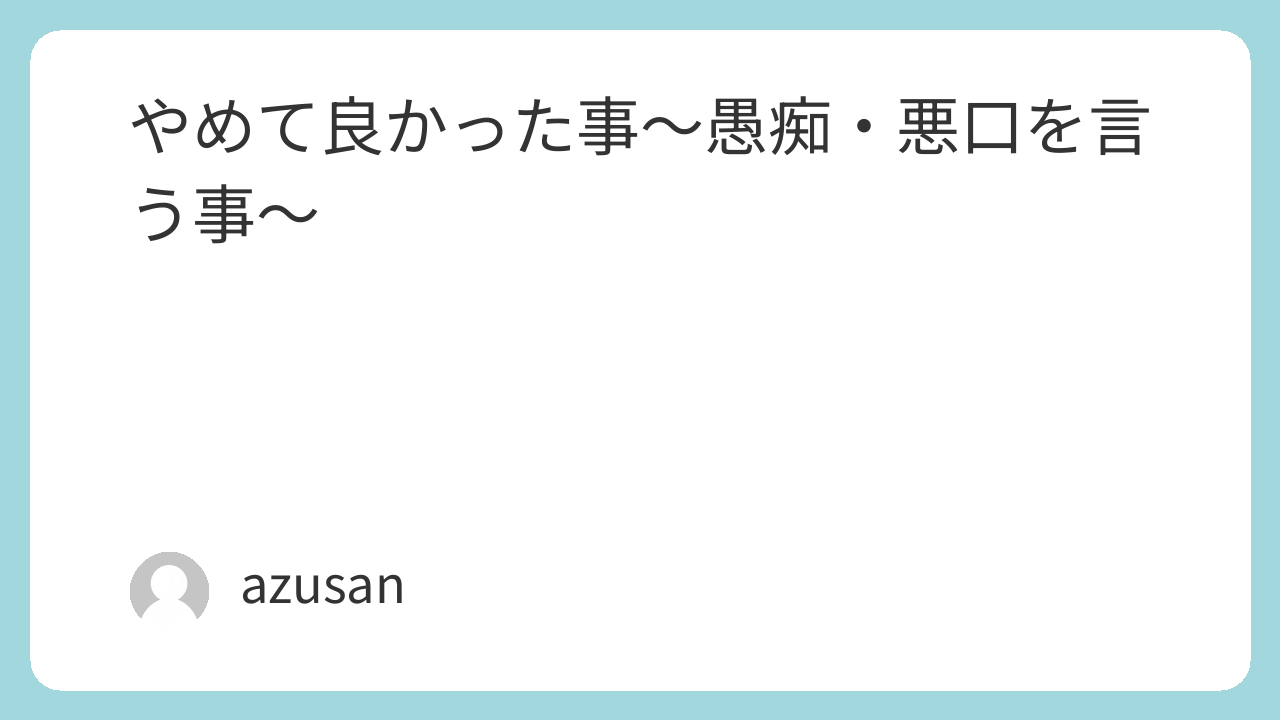 今回は『愚痴・悪口を言う事』をやめて良かった事について書きたいと思う。